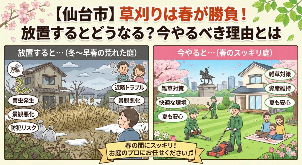 【仙台市】草刈りは年に何回必要?無理のない年間管理の考え方とは