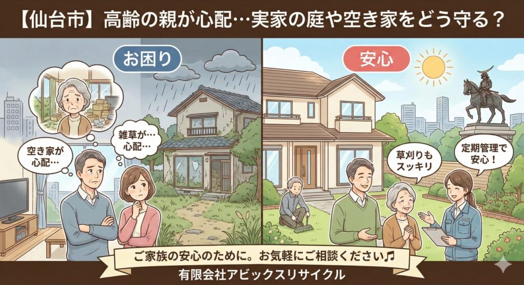仙台市で実家の庭や空き家管理についてお悩みの方は、お気軽にお問い合わせください。