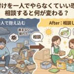 - 片付けを一人でやらなくていい理由|相談すると何が変わる?🎵「片付けは自分でやるもの」「人に頼むほどじゃないし…」 仙台市で片付けのご相談を受けていると、こうした言葉を本当によく耳にします😊 でも実は、片付けがつらくなってしまう原因の多くは“一人で抱え込んでし ...